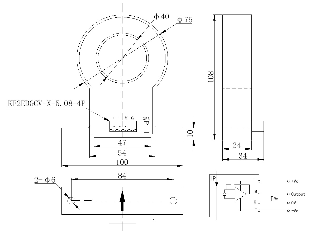 工作原理 | 工作電壓V | 額定電流IP/A | 輸出 | 精度% | 響應(yīng)時(shí)間 | 抗電強(qiáng)度kV | 工作溫度℃ | 備注 |