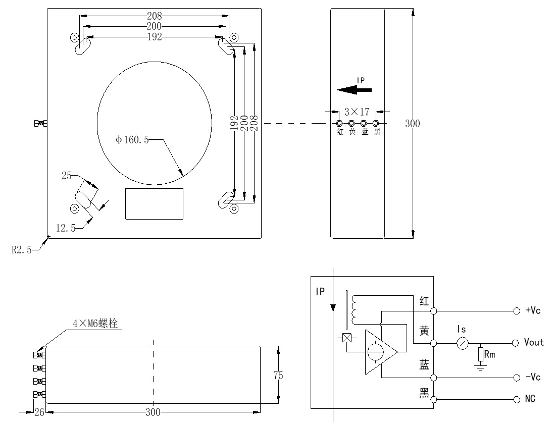 工作原理 | 工作電壓V | 額定電流IP/A | 輸出 | 精度% | 響應(yīng)時(shí)間 | 抗電強(qiáng)度kV | 工作溫度℃ | 備注 |