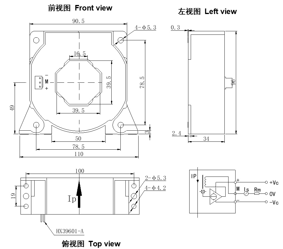 工作原理 | 工作電壓V | 額定電流IP/A | 輸出 | 精度% | 響應時間 | 抗電強度kV | 工作溫度℃ | 備注 |